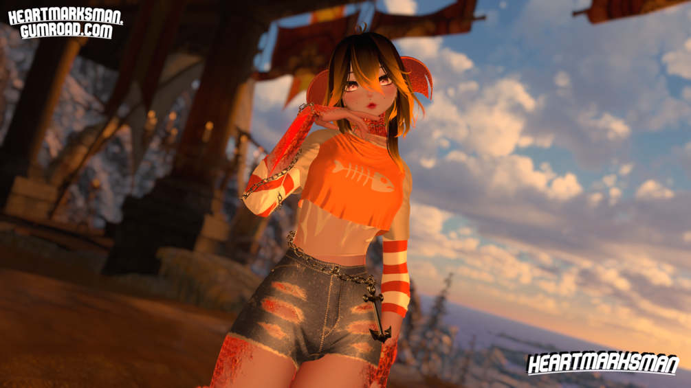 Soft Mode: (Hue Shifts: Eyes, Crop Top, Sleeves, Socks, Hair Tip and all the Fish parts including Body Scales!)